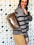 This handbag style has everything thought-out, down to the piping.  Just as Adri carefully curates her wardrobe + accessories, this classic shape + style is the perfect size to carry the essentials.  Strapped with a 3/4" hobo strap this lovely is sure to be a timeless classic for your accessory collection!