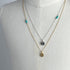 One of our first designs, our simple + elegant tag necklace is a perfect piece to wear on its own or layer with others.  Chain is accented with three turquoise beads---something that we have added to our signature pieces from the start.