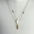 One of our first designs, our simple + elegant rectangle tag necklace is a perfect piece to wear on its own or layer with others.  Chain is accented with three turquoise beads---something that we have added to our signature pieces from the start.