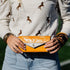 Look no further for our most lovely form organization. The Genevieve wallet is sleek, stylish and fabulously organized.  Space for your cards in the middle folds in two spots, choose to carry your checkbook, cash and anything else that you want to tote in organization. Additionally, we have added a colorful zipper to the backside to carry your change!!!